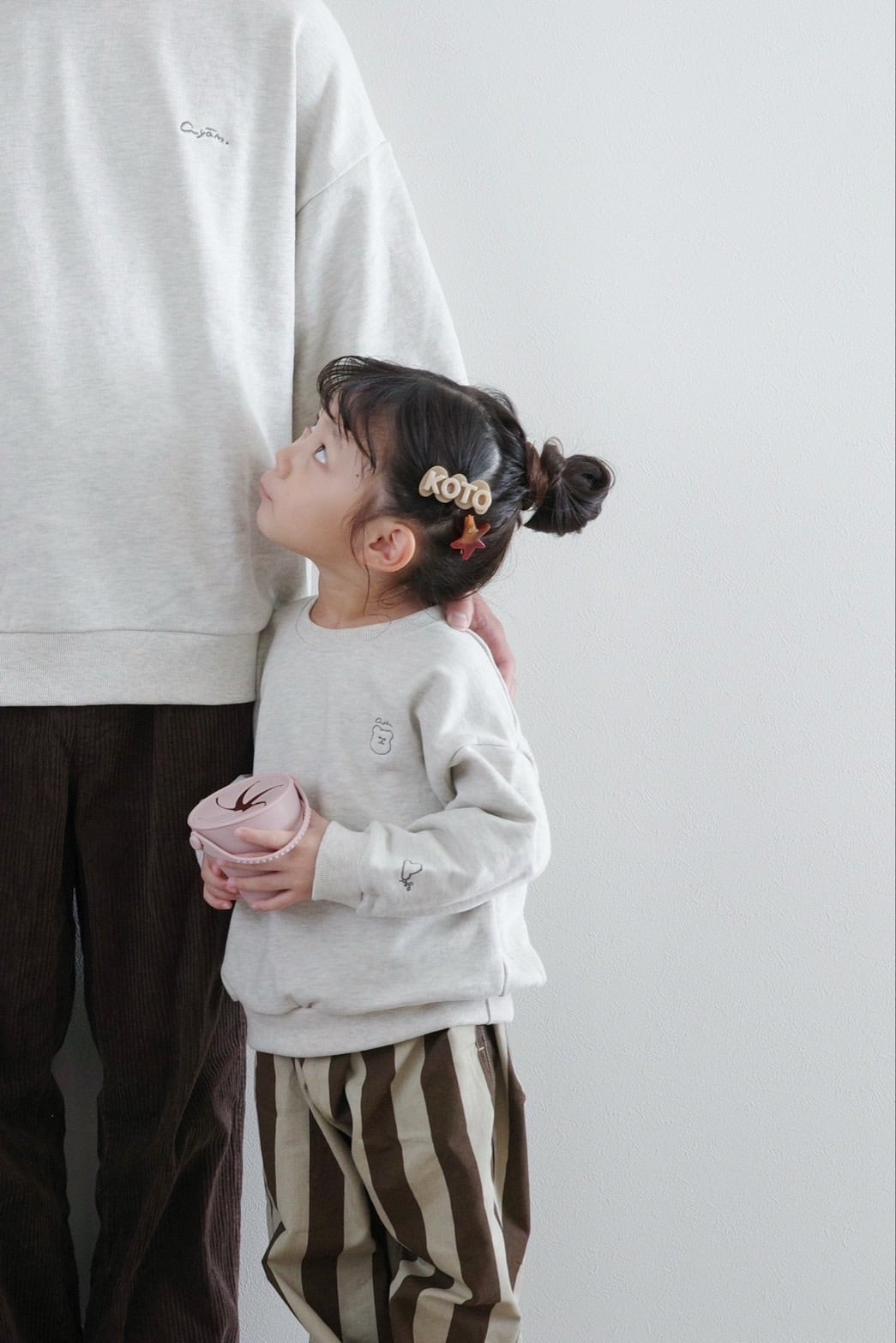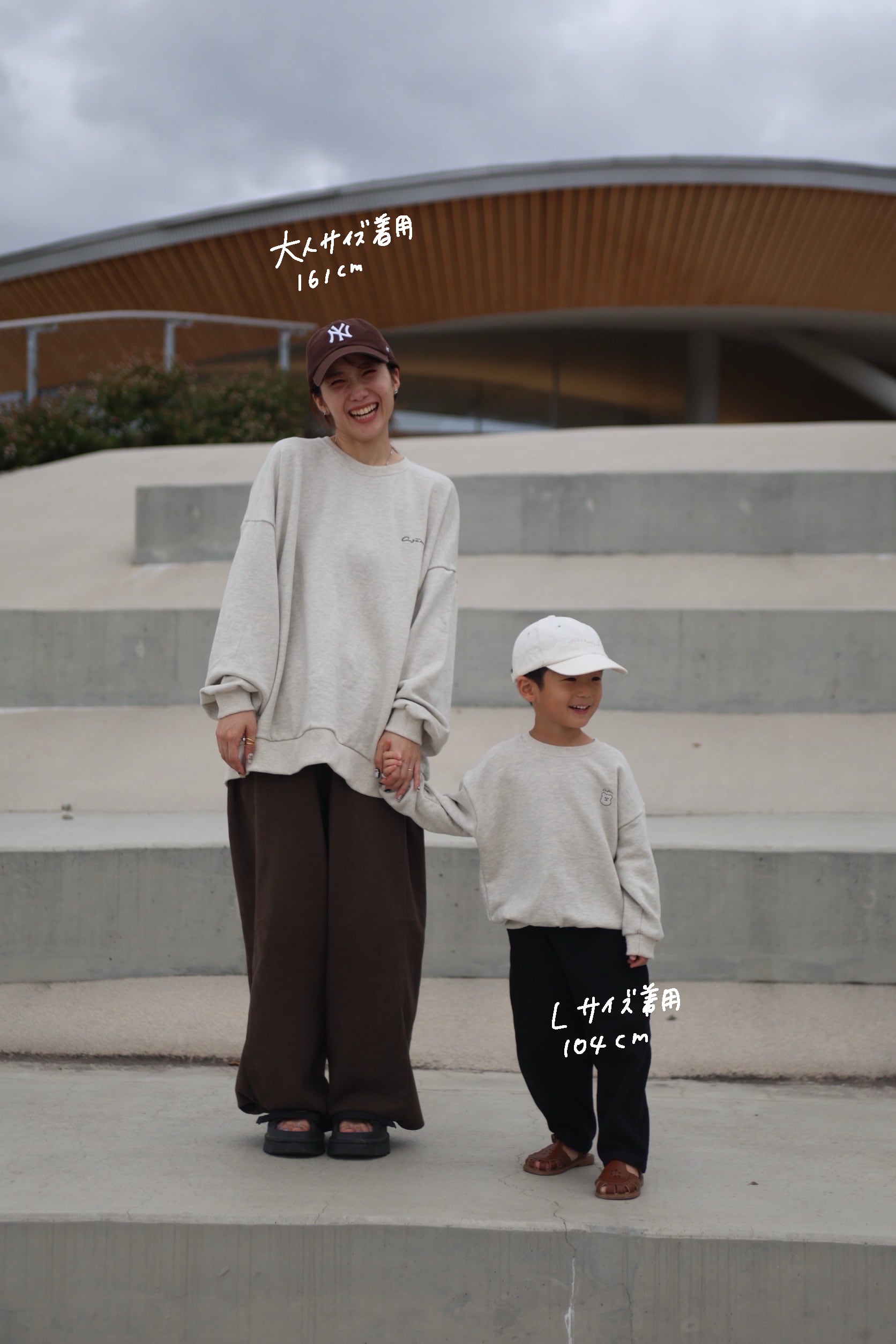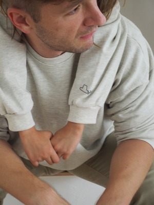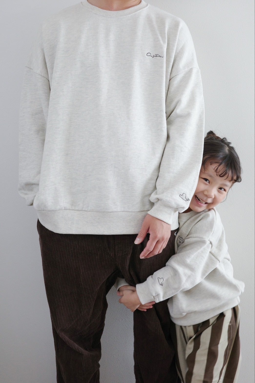 大人の胸元にはayamの手描きロゴが