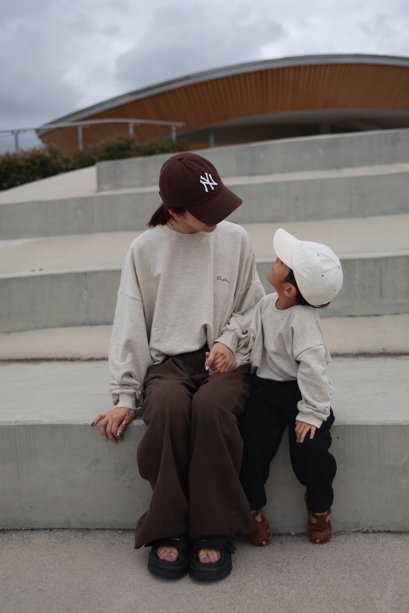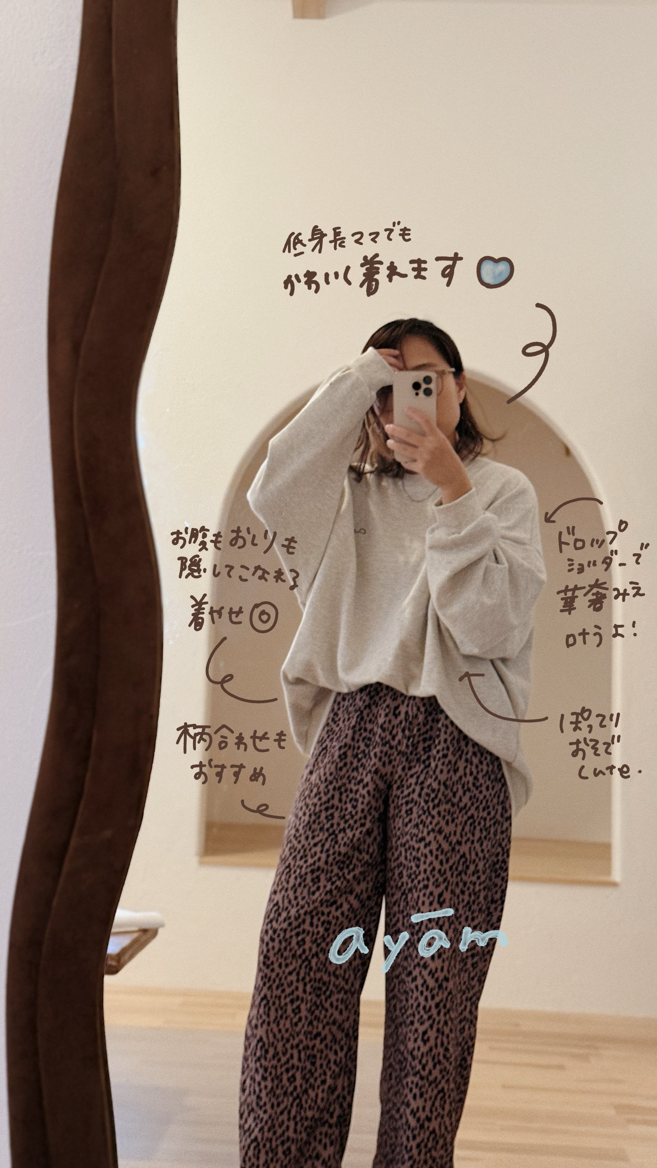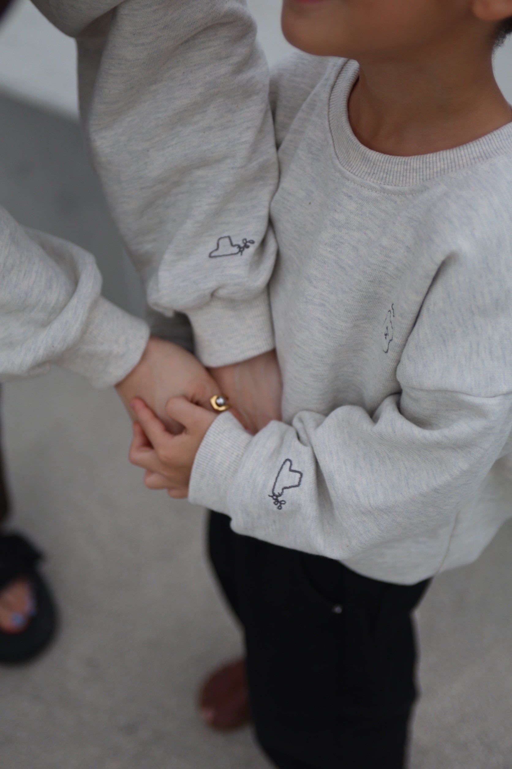 大人の胸元にはayamの手描きロゴが