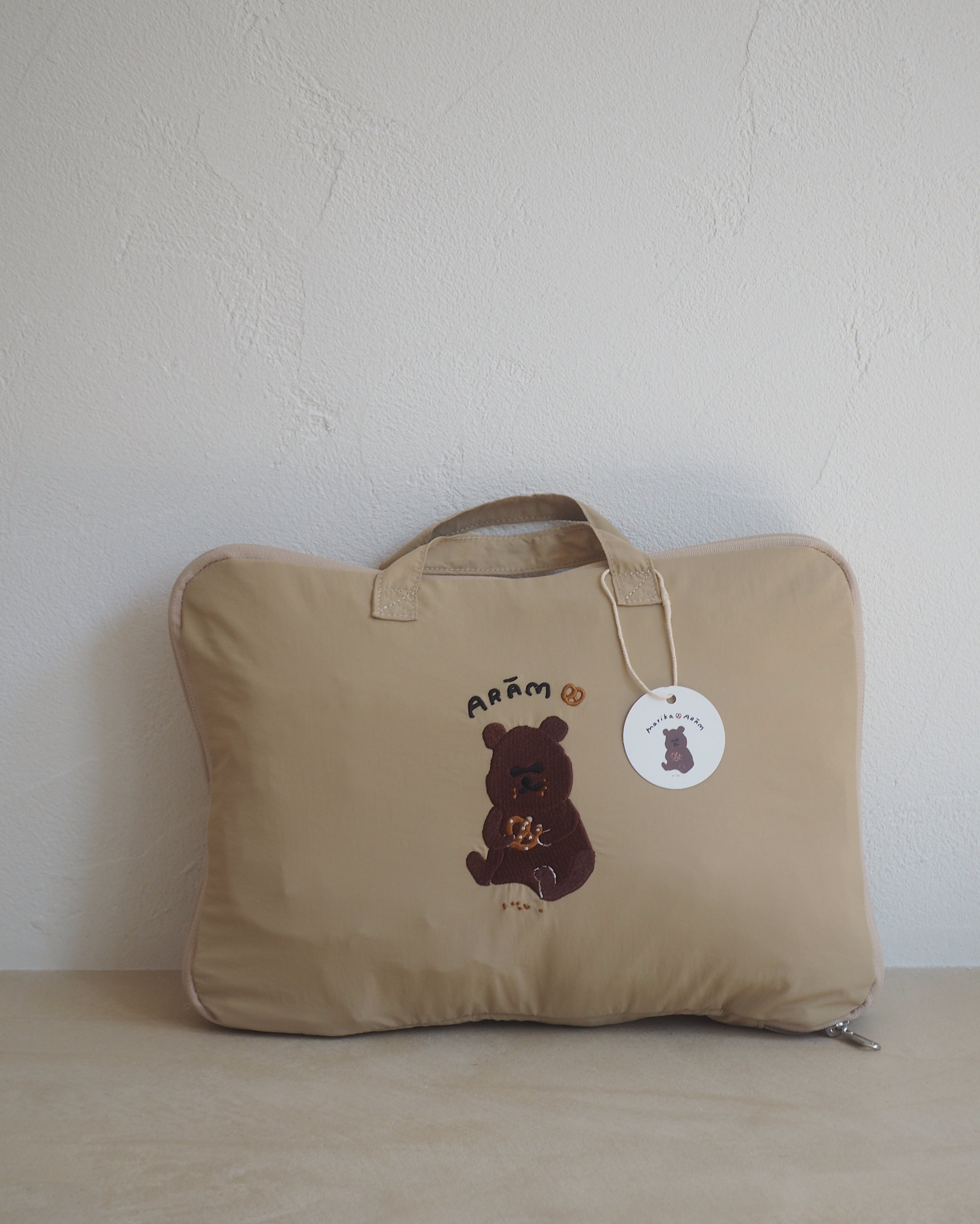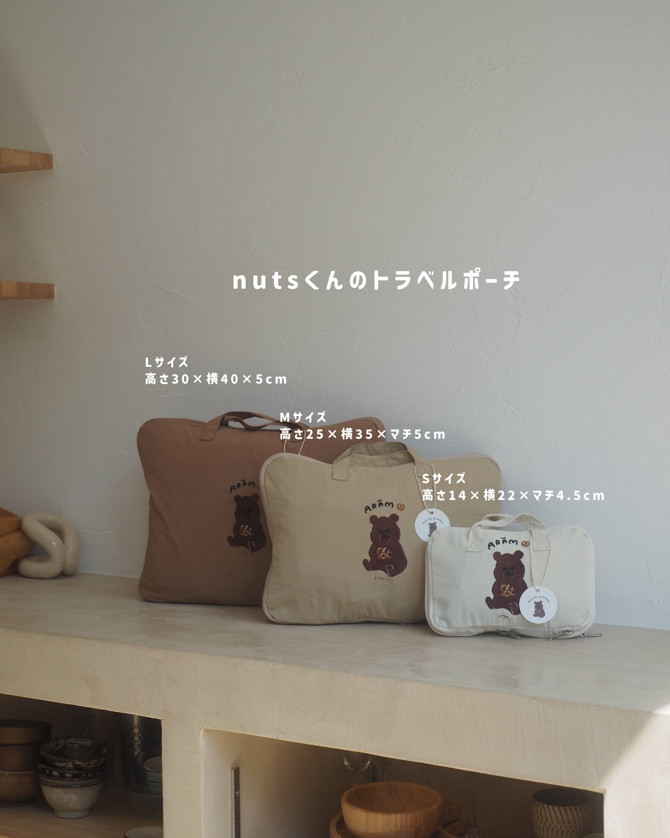 プリッツェルをこぼしながら食べるnutsくんの刺繍がポイント!くすっとかわいい。