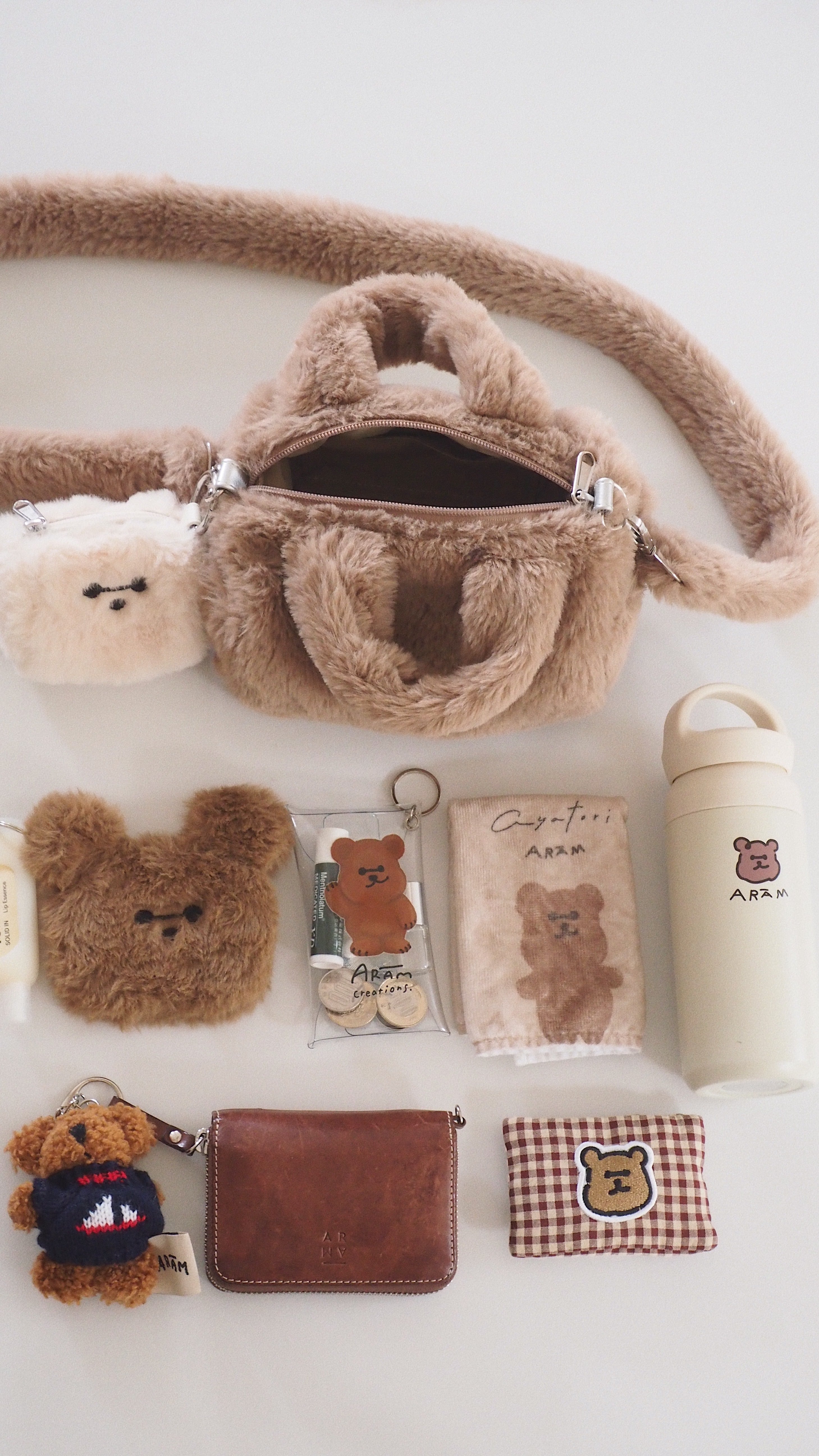 ロールケーキのようなまるっとフォルムなので、空間に余裕があり、ポーチやタオルだって。
